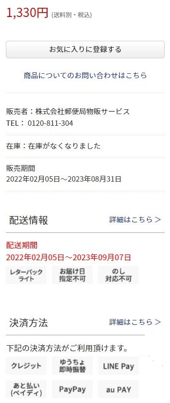 公式サイトに6種掲載されている商品のうちの一つ。2025年5月12日に11万円で落札された。