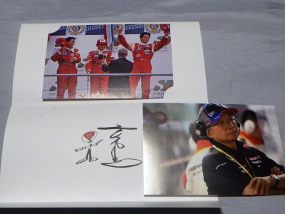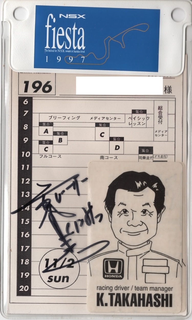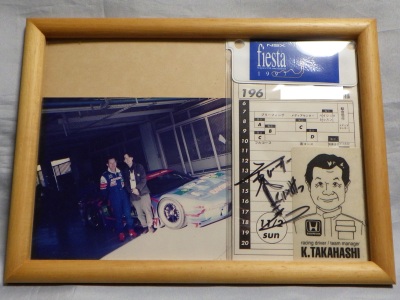 【参考】我が家のコレクションルームに25年間飾られている高橋 国光氏との2ショット写真とパスケースに頂いたサイン。 |