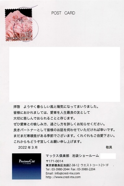 2024年10月8日にヤフオクに出品され、落札できた「車検証入れ」とセットで同じ出品者の方から入手したものなので、ここに掲載しておく。 成約者に対する納車までのサービスイベントのようなものだろうか。 「社内限」となってはいるが、このように顧客の手に渡っているということは顧客に渡すこと前提で製作されているのだろうか。 表紙に記載があるように「オーダー拠点着招待状」というものも存在しているようだが、細々したことを口頭で説明するより確かにこれを1冊渡してしまう方が話は早そう。 成約者とのやりとりが分かる貴重な資料の一つ。 |