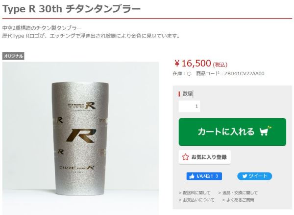 タイプR30周年記念チタンタンブラー/HORIE/\16,500 |