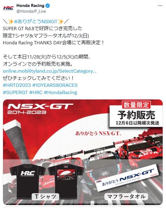 「Honda Racing THANKS DAY 2022」で販売され、その後、ホンダ公式