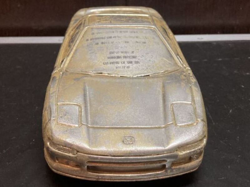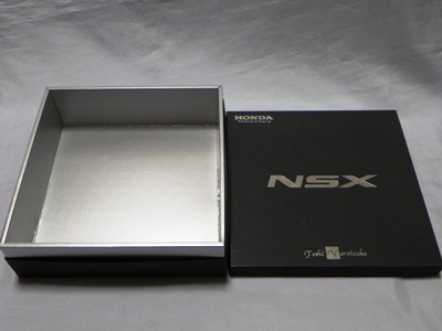 その空き箱が12月9日にヤフオクに再登場。ライバルが1人も現れないまま落札することができた。前回出品されたときの半額以下で落札できたが、前回は付属していた梱包材とメッセージカードはなし。NSXについての鎧塚氏のコメントが書かれたカードは今後も探し続ける予定。 |