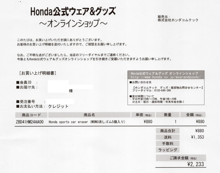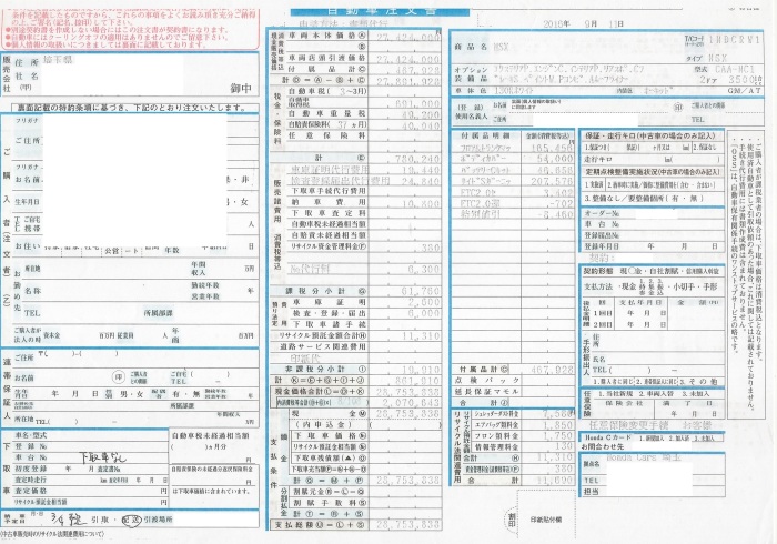 | NC1注文書&お買い上げ明細書/ホンダ | |