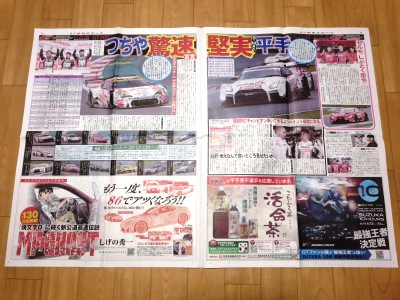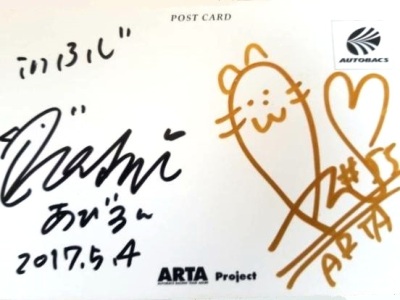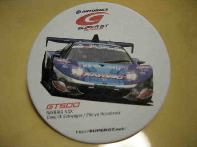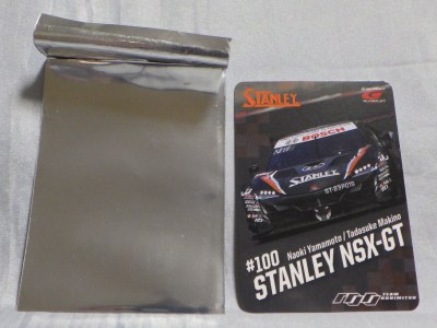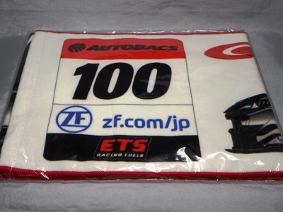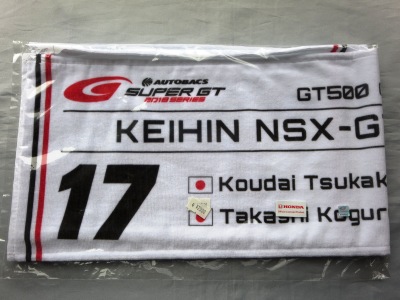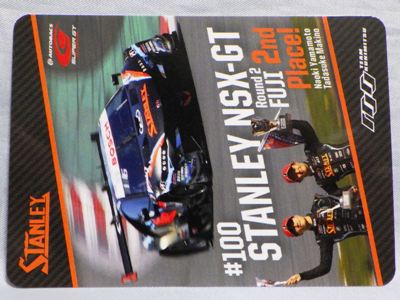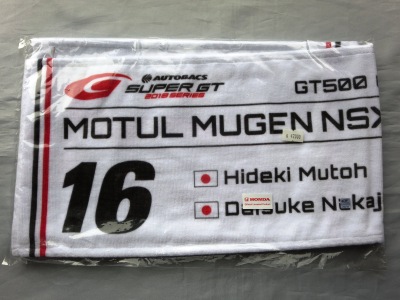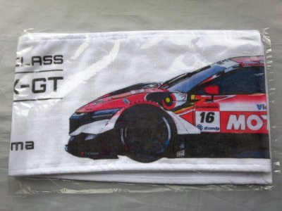 | 2017年5月5日に富士で開催されたスーパーGT第2戦でシールとともに配布されたもの。 ヤフオクにて入手。手前の斜めにカットされた部分にマシンがプリントされ ている。 | |||
