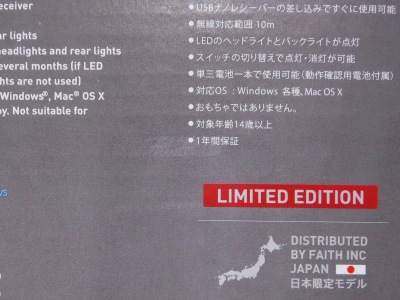 | 2017年10月15日に「NSX fiesta 2017」参加のため鈴鹿サーキットを訪れた際、遊園地内のショップの1つ「サーキットプラザ」で購入。商品名に「NSX」の文字はないがモチーフにしているのは明らかなので勝手にNSXグッズに認定。全長約32cm。リアライトはHSV-010風。リュック(\3,000・画像右下)も売っていたがデザインが違いすぎて購入せず。 | |||