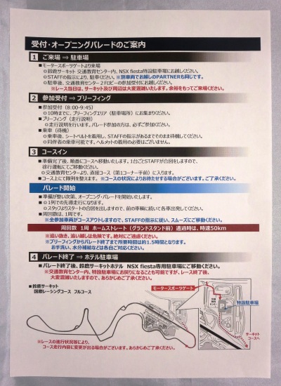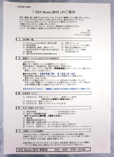 | 2016年5月14日、ツインリンクもてぎで有志によって開催されたイベントで使用されたもの。開催日時、参加費、会場、テーマ、プログラム内容、同封書類一覧が記されている。サイズはA4。 | |||