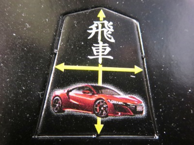 Honda Cars 茨城南が2017年夏に成約記念品として配布していたもので、2018年3月にヤフオクにて入手。おそらく私の落札価格より安い出品物が過去にいくつもあったはずだが、商品名に「NSX」というキーワードが入っていなかったため、最近まで存在すら知らなかった。 どの辺がNSXグッズかと言うと、飛車がNSXになっている。 ちなみに王将はレジェンド、角行がオデッセイアブソルート(?)、金将がオデッセイ、銀将がヴェゼル、香車がS660、桂馬がフリード、歩兵がN-BOXとなっており、NSX以外少々地味な印象(裏面は駒の進め方の説明のみで画像はない)。 ヤフオクの画像ではコンパクトなマグネット将棋盤的なものをイメージしていたが、実物は、ケースが20.6×56.0cm、将棋盤が広げると43.6×39.2cmというビッグサイズ。NSXの飛車の駒のサイズは2.9×2.6cm。 |