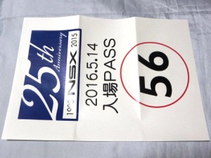 NSX25周年記念イベント 「NSX DAYS2016 in MOTEGI」 入場パス |