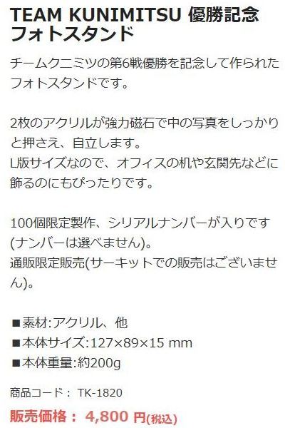 | チーム国光2021第4戦優勝記念フォトスタンド/チーム国光/非売品 | |||