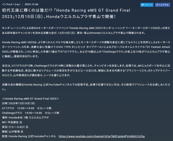 ホンダおよびHRCが展開する次世代モータースポーツ・プロジェクト「Honda Racing eMS」。 |