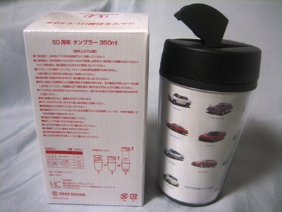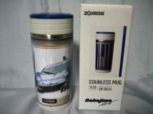 | 2014年12月ヤフオクにて入手。2010年スーパーGT第8戦もてぎでのVIPシート特典。メーカーはKDWで中国製。元の商品名は「セルトナ・アルミボトル(カルビナ付き)」。全高18.5cm、直径7.2cm、容量500ml。箱あり。 | |||