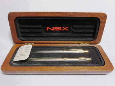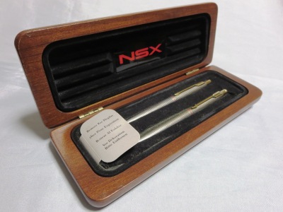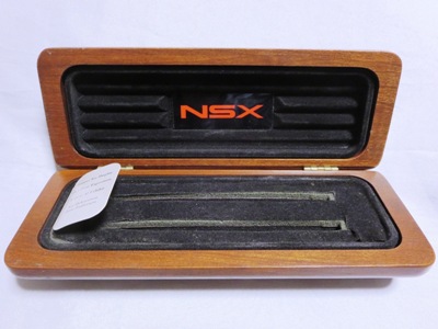 2024年10月8日にヤフオクに出品され、落札できた「車検証入れ」とセットで同じ出品者の方から入手したものなので、ここに掲載しておく。 車検証入れに同じように入っていた「VICS光・電波ビーコンユニット」の説明書などと同様に汎用品だと思って最初は見逃していたが、よく見たらNSX専用品 だった。これはこれで貴重なグッズだと思われる。 |