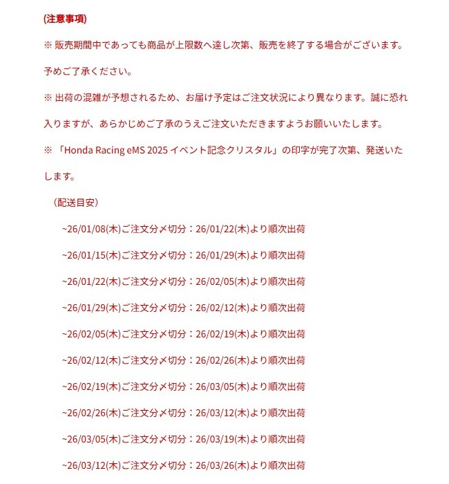 Honda Racing eMS 2025 予選参加記念クリスタル/?/\5,500 |