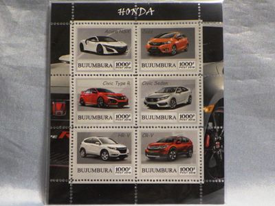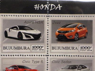 2021年5月25日にヤフオクに出品されたものを5月27日に偶然発見し落札。 「アンティーク、コレクション」のカテゴリで、「ホンダ」のワードで検索していて見つけたもので、商品のタイトルに「NSX」が入っていなかったため、これまで見つけられなかっただけで、以前から出品されていたものかもしない。 発行国は東アフリカのブルンジ共和国。 私が子どもの頃には、すでに切手収集ブームは下火でしたが、1963年から1972年にかけてアラブ首長国連邦を構成する一部の首長国において、切手収集家への販売を目的に乱発された「土侯国切手」というものが存在した。 ありとあらゆる題材が用いられていて、素人目には目を引くのだが、コレクターには敬遠されていた。 外国が発行する日本車の切手ということで、ちょっとそっち系の臭いがしないでもないが、カッコイイので良しとしよう。 ちなみにNSX以外にデザインされているのは、ジャズ(フィット)、シビックタイプR、シビックセダン、HR-V、CR-V。 すべての額面は1000ブルンジフラン(2021年6月1日のレートで約55円)。 印刷されている「BUJUMBURA(ブジュンブラ)」は経済面の首都の名前で、政治面の首都はギテガとなっている。 |