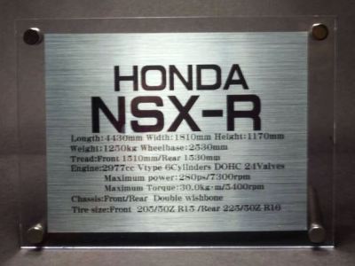 | NSX-Rアクリルネームプレート(デアゴスティーニ/アシェット 等用)スタンド/oceans_0817/非売品 | |||