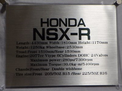NSXブリキ看板B(NSX-R1992チャンピオンシップホワイト)/ug2222/\1,680(送料別\210) |