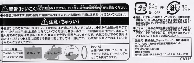 2025年3月に発売されたカプセル自販機商品Vol.7悩めるシンジNSX」をメルカリで入手。 ティーシーピーは、アニメ・エンターテイメントグッズの企画・製造・販売の業務を行う1996年に東京に設立された会社。 その中で、NIC(ニック)事業部は、アニメ・ファンシーキャラクター雑貨の企画・デザイン・製造・販売する部門。 企画から製造、販売まで一貫することにより、小さいお子様でも手にしやすい低価格ながらもクオリティの高い商品を製造販売しているとのこと。 今回の商品は全6種で各400円だが、入手品は送料込み600円で購入できた。 台座の直径は6.4cm。台座を含め3つのパーツを組み立てて完成させるが、付属のボールチェーンを使用しパネルをキーホルダーにすることも可能。 Vol.6に含まれているブラックのRX-7(FD)がぱっと見NSXなので 、購入時は要注意。 |