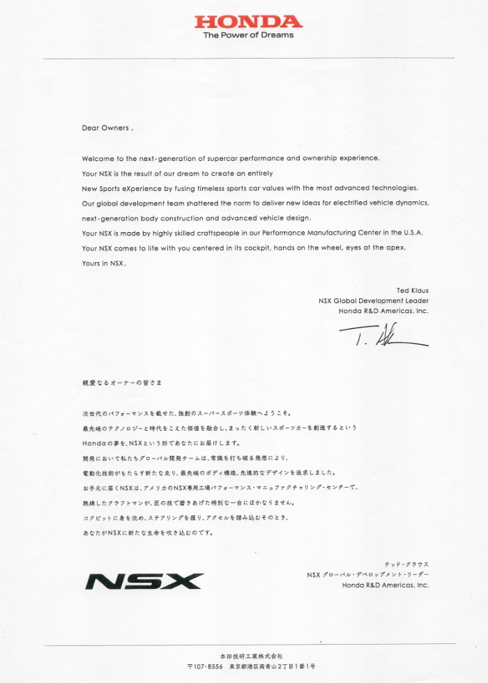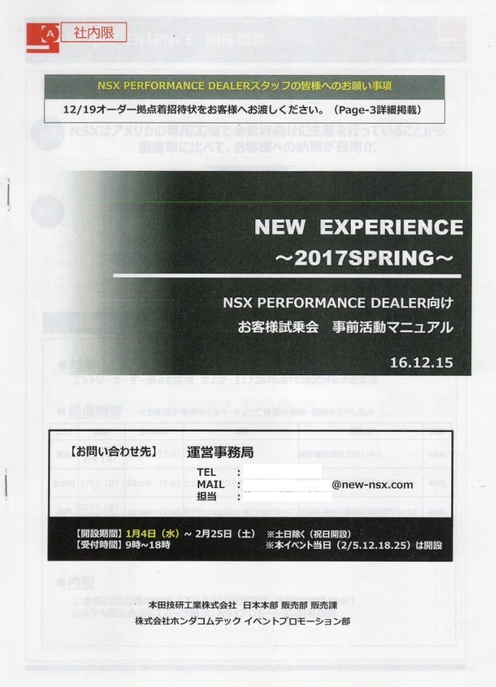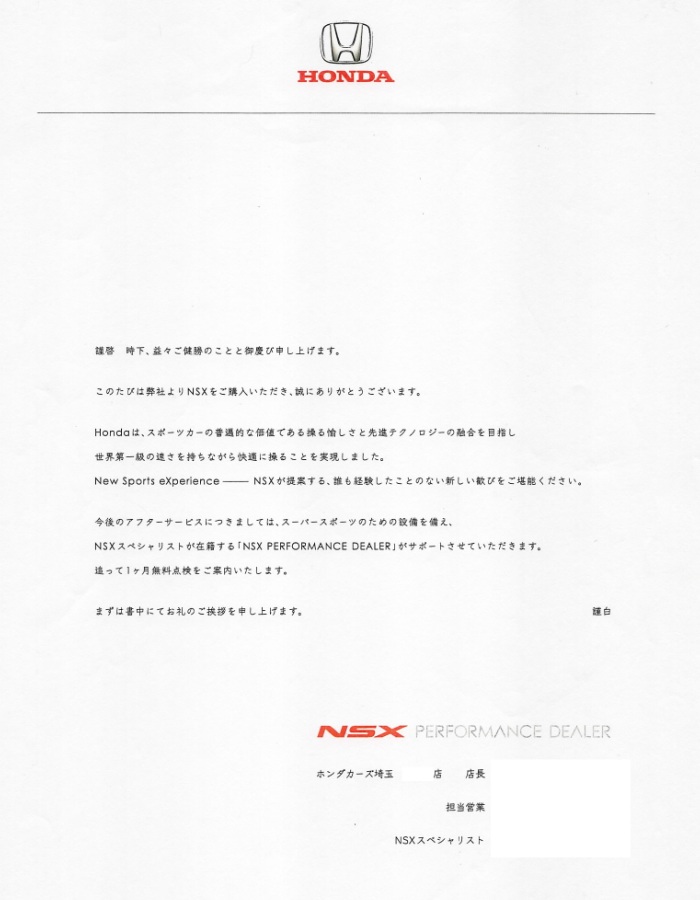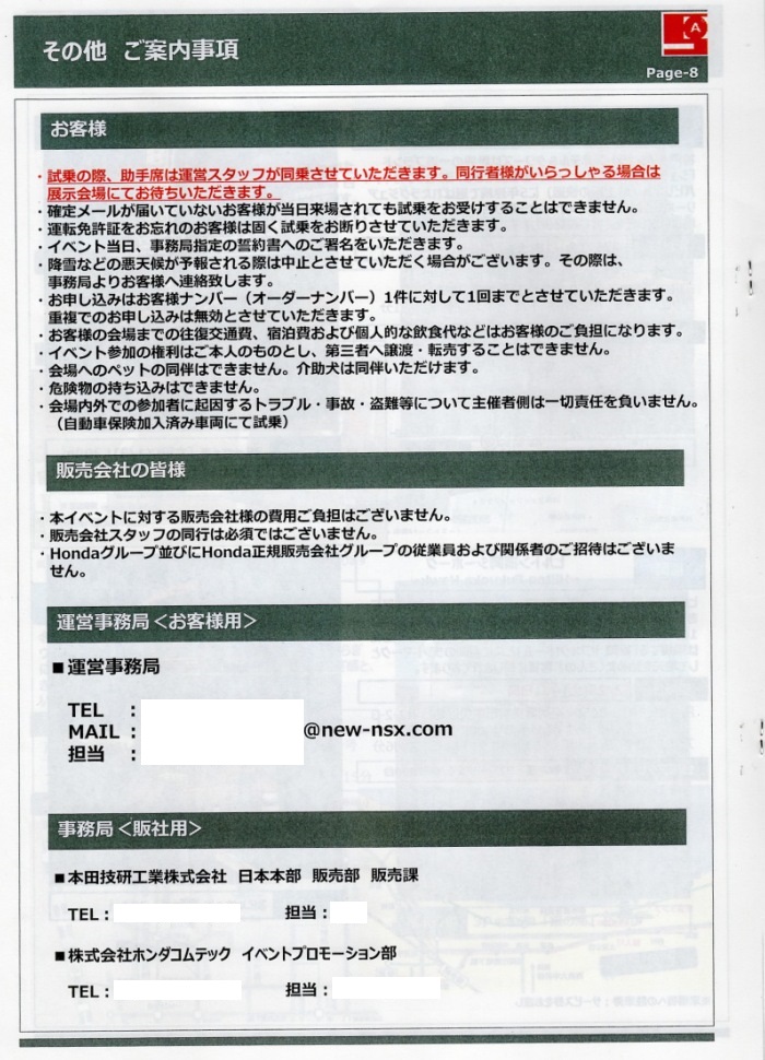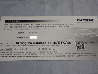 | NSX特別試乗イベントご招待状/ホンダ | |