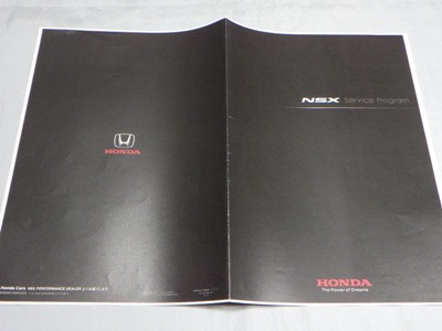 2024年10月8日にヤフオクに出品され、落札できた「車検証入れ」とセットで同じ出品者の方から入手したものなので、ここに掲載しておく。 A4サイズ見開きで(開くとA3)、左ページは「NSXメンテナンスプラン」、右ページは「NSX延長保証」の案内となっている。 前者は「高度な走りを維持するための整備を定期的に行います」とのことで、「法的に必要な点検や車検およびHondaが 推奨する点検・整備に加えて、アライメントテスターによって、ホイールアライメントの測定を行う『NSX特有点検』などをパッケージにしました。NSXの性能を維持するとともに、トラブルを早期発見するための特別なメンテナンスサービスを受けることができます。」と書かれている。 5年間のプログラムで、気になる価格はディーラーごとに異なるようで記載なし。 後者は「長期にわたり安心をお届けします」とのことで、「メーカー保証が終了した後も同程度の保証を引き続きできるNSXオーナーの延長保証です」と書かれている。 具体的にはメーカー保証の終了する3年目から5年目までを保証してくれるもので、価格は20万円。 NC1の修理代はどこが故障しても高そうなので、これぐらいの価格なら結構リーズナブルな気がする。 |