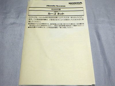 | インドアボディカバー説明書&カーゴネット説明書/ホンダ | |