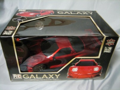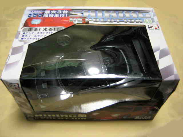 | 2008年1月、ヤフオクにて購入。 アミューズメント専用景品。 他のメーカーの型の流用ではなさそう。 この商品の一番の特徴はヘッドライトのみならず、アンダーネオン、ホイールが発光すること。 ガンメタリック、メタリックレッド、メタリックシルバーの3種が存在。 周波数27MHz。 |