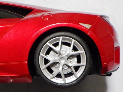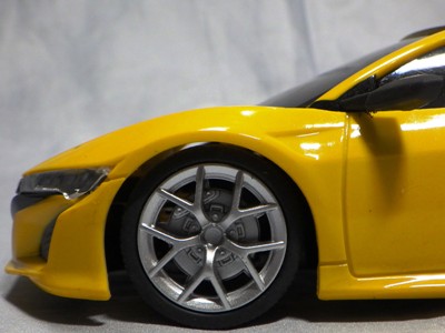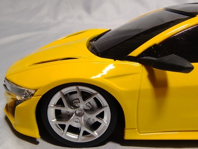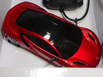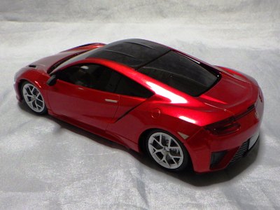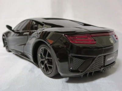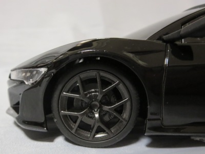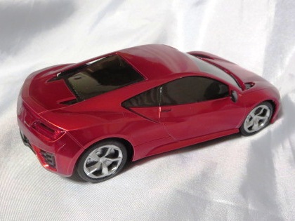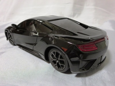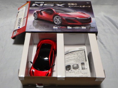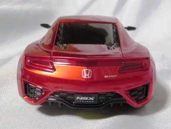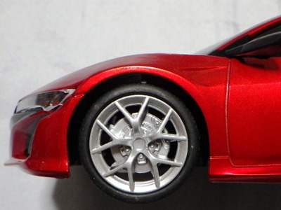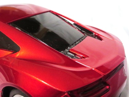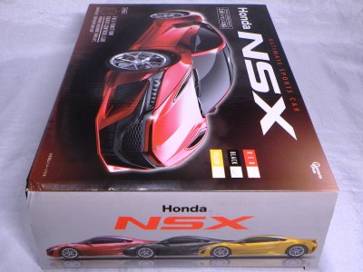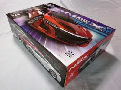 | 上の画像のような状態で本体がパッケージに収められており、本体は大きなプラネジで内箱に固定されているので、ドライバーがなくても簡単に本体を取り出せるのがありがたい。ディスプレイモデルとしても十分に鑑賞に堪えうるディテールで、NSXコンセプトと同様に、破損しやすいドアミラーがラバー製になっているのはグッドアイディア。 | |