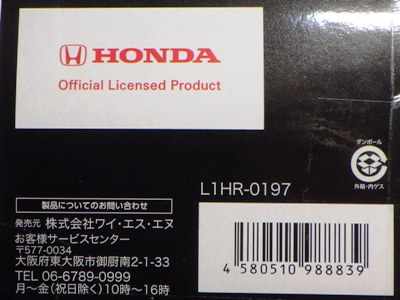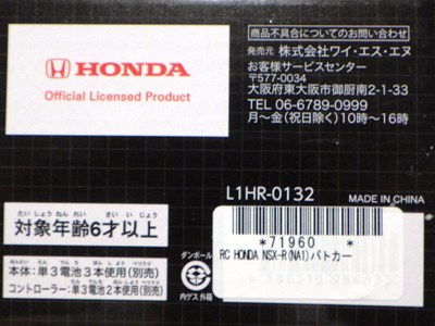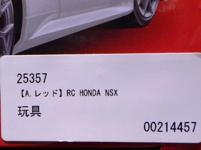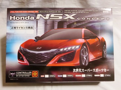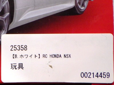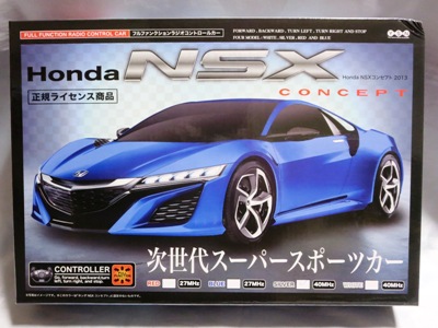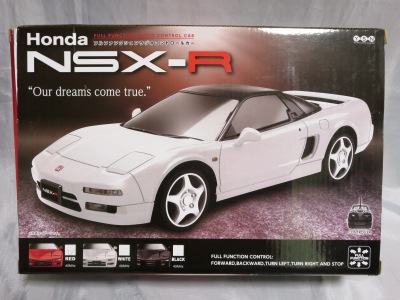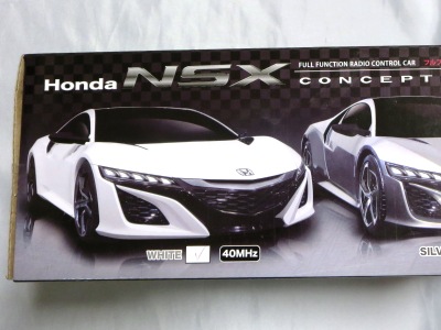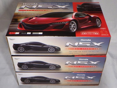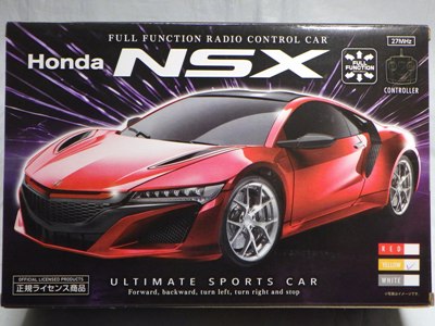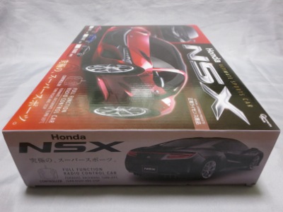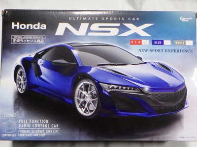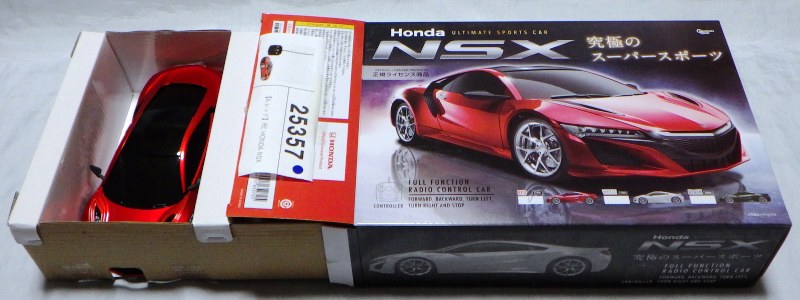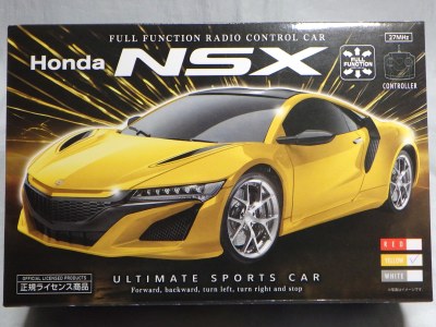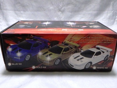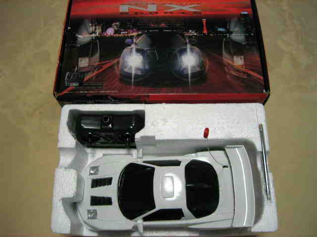 | 2006年3月ヤフオクにて購入。 NXという名称がついているものの明らかにNSX。 ブルー、ゴールド、ホワイトの3種が存在し、これはホワイト。 海外の商品のように見えるがY.S.Nは大阪の会社。 ラジコン自体は中国製。 |
