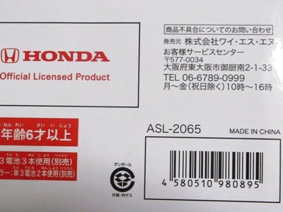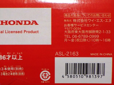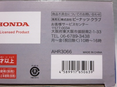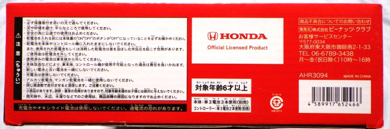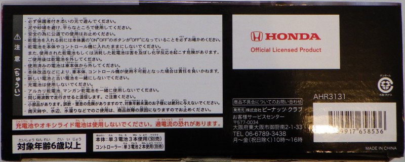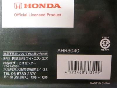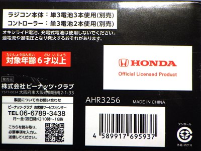 2025年2月22日にヤフーフリマに初登場したホワイトのみ入手。 2025年5月にメルカリにてレッドとブラック&ホワイトセットを入手してコンプ。 品番はAHR3221で、周波数はすべて27MHz。 カラーはレッド・ブラック・ホワイトの3種だが、この組み合わせはこのシリーズでは定番で、第1弾から第3弾、第8弾、第10弾、第12弾、第14弾、第17弾がこの組み合わせを採用しており、採用率はシリーズ最高の37.5%(9回)を誇る。 各カラーを組み合わせではなく個別に採用回数順に並べると、1位はレッドの22回(採用率91.7%)、2位はブラックの20回(採用率83.3%)、3位はホワイトの14回(採用率58.3%)、4位はブルーの8回(同33.3%)、5位はイエローの6回(25.0%)、6位はシルバーの2回(8.3%)となっている。 この順が市場をリサーチした結果の人気順ということであれば、一番冒険をした組み合わせは、第15弾のイエロー・ブルー・ホワイトということになる(さすがにイエロー・ブルー・シルバーはなさそう)。 NC1の実車はタイプSを除くと全9色で、そのうちレッド系とホワイト系が各2色あったので、もしラジコンに完全新色が登場するとすれば、オレンジパールが最有力候補かと思われる。 第1弾〜第3弾…レッド(27MHz)・ブラック(27MHz)・ホワイト(40MHz) 第4弾…レッド(27MHz)・ブラック(27MHz)・ブルー(40MHz) 第5弾…レッド(27MHz)・ブラック(27MHz)・シルバー(40MHz) 第6弾…レッド(27MHz)・ホワイト(27MHz)・シルバー(40MHz) 第7弾…レッド(27MHz)・ブルー(27MHz)・ブラック(40MHz) 第8弾…レッド(27MHz)・ホワイト(40MHz)・ブラック(40MHz) 第9弾…レッド(27MHz)・ブラック(27MHz)・ブルー(40MHz) 第10弾…レッド(27MHz)・ホワイト(27MHz)・ブラック(40MHz) 第11弾…レッド(27MHz)・イエロー(27MHz)・ブラック(27MHz) 第12弾…レッド(27MHz)・ブラック(27MHz)・ホワイト(27MHz) 第13弾…ブルー(27MHz)・ホワイト(27MHz)・ブラック(27MHz) 第14弾…レッド(27MHz)・ブラック(27MHz)・ホワイト(27MHz) 第15弾…イエロー(27MHz)・ブルー(27MHz)・ホワイト(27MHz) 第16弾…レッド(27MHz)・ブラック(27MHz)・イエロー(27MHz) 第17弾…レッド(27MHz)・ブラック(27MHz)・ホワイト(27MHz) 第18弾…レッド(27MHz)・ブラック(27MHz)・イエロー(27MHz) 第19弾…レッド(27MHz)・ブラック(27MHz)・ブルー(27MHz) 第20弾…レッド(27MHz)・ブラック(27MHz)・ブルー(27MHz) 第21弾…レッド(27MHz)・イエロー(27MHz)・ホワイト(27MHz) 第22弾…レッド(27MHz)・イエロー(27MHz)・ブラック(27MHz) 第23弾…レッド(27MHz)・ホワイト(27MHz)・ブルー(27MHz) 第24弾…レッド(27MHz)・ブラック(27MHz)・ホワイト(27MHz) |