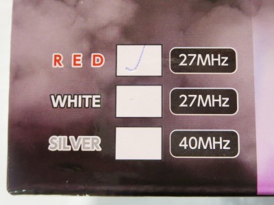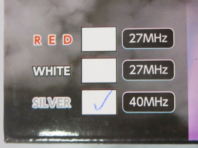 2024年8月11日にヤフオクに初登場し、すべて落札してコンプ。 型番はL1HR-0197。周波数はすべて27MHz。 第1弾〜第3弾…レッド(27MHz)・ブラック(27MHz)・ホワイト(40MHz) 第4弾…レッド(27MHz)・ブラック(27MHz)・ブルー(40MHz) 第5弾…レッド(27MHz)・ブラック(27MHz)・シルバー(40MHz) 第6弾…レッド(27MHz)・ホワイト(27MHz)・シルバー(40MHz) 第7弾…レッド(27MHz)・ブルー(27MHz)・ブラック(40MHz) 第8弾…レッド(27MHz)・ホワイト(40MHz)・ブラック(40MHz) 第9弾…レッド(27MHz)・ブラック(27MHz)・ブルー(40MHz) 第10弾…レッド(27MHz)・ホワイト(27MHz)・ブラック(40MHz) 第11弾…レッド(27MHz)・イエロー(27MHz)・ブラック(27MHz) 第12弾…レッド(27MHz)・ブラック(27MHz)・ホワイト(27MHz) 第13弾…ブルー(27MHz)・ホワイト(27MHz)・ブラック(27MHz) 第14弾…レッド(27MHz)・ブラック(27MHz)・ホワイト(27MHz) 第15弾…イエロー(27MHz)・ブルー(27MHz)・ホワイト(27MHz) 第16弾…レッド(27MHz)・ブラック(27MHz)・イエロー(27MHz) 第17弾…レッド(27MHz)・ブラック(27MHz)・ホワイト(27MHz) 第18弾…レッド(27MHz)・ブラック(27MHz)・イエロー(27MHz) 第19弾…レッド(27MHz)・ブラック(27MHz)・ブルー(27MHz) 第20弾…レッド(27MHz)・ブラック(27MHz)・ブルー(27MHz) 第21弾…レッド(27MHz)・イエロー(27MHz)・ホワイト(27MHz) 第22弾…レッド(27MHz)・イエロー(27MHz)・ブラック(27MHz) 第23弾…レッド(27MHz)・ホワイト(27MHz)・ブルー(27MHz) |