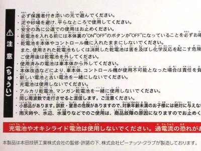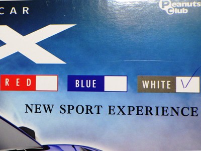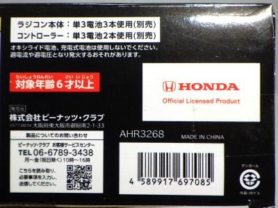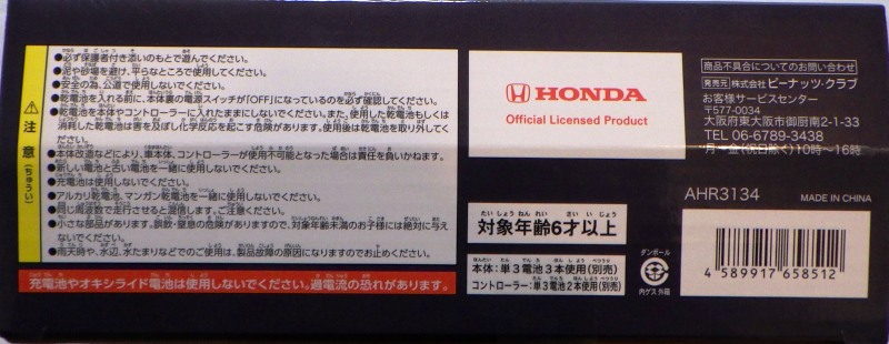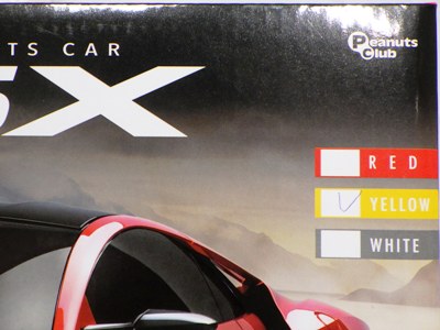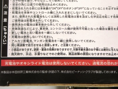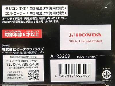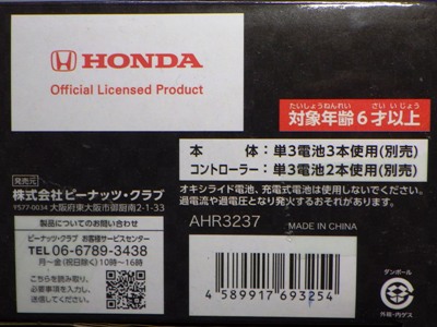 2021年3月17日にヤフオクにホワイトが初登場したものを落札した。 2021年3月28日にヤフオクにブラックが初登場したものを落札した。 2021年4月14日にヤフオクにレッドが初登場したものを落札した。 型番はAHR3112。周波数はすべて27MHz。 販売元の表示はピーナッツ・クラブ。製造元は記載されていない。 第1弾〜第3弾…レッド(27MHz)・ブラック(27MHz)・ホワイト(40MHz) 第4弾…レッド(27MHz)・ブラック(27MHz)・ブルー(40MHz) 第5弾…レッド(27MHz)・ブラック(27MHz)・シルバー(40MHz) 第6弾…レッド(27MHz)・ホワイト(27MHz)・シルバー(40MHz) 第7弾…レッド(27MHz)・ブルー(27MHz)・ブラック(40MHz) 第8弾…レッド(27MHz)・ホワイト(40MHz)・ブラック(40MHz) 第9弾…レッド(27MHz)・ブラック(27MHz)・ブルー(40MHz) 第10弾…レッド(27MHz)・ホワイト(27MHz)・ブラック(40MHz) 第11弾…レッド(27MHz)・イエロー(27MHz)・ブラック(27MHz) 第12弾…レッド(27MHz)・ブラック(27MHz)・ホワイト(27MHz) |