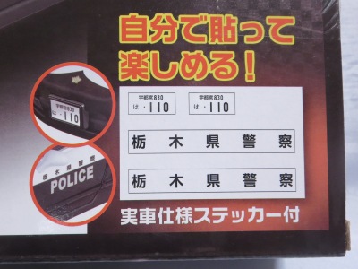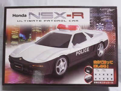 2021年11月6日にヤフオクに初登場したパトカー仕様。 NA1モデルとしては第8弾となるが、第4弾、第5弾がパトカー仕様だったので、パトカーモデルとしては第3弾となる。 パトカーモデル第1弾は、実在する栃木県警察仕様と実在しない警視庁仕様の2種があったが、今回は第2弾同様、栃木県警察仕様1種のみ。 実在するといっても、実際の栃木県警察パトカーはNSX-Rではなく、通常のクーペ仕様である。 自分でシールを貼るタイプ。 パッケージのオモテ面とウラ面は共通。 周波数は40MHz。品番はAHR3134。 |