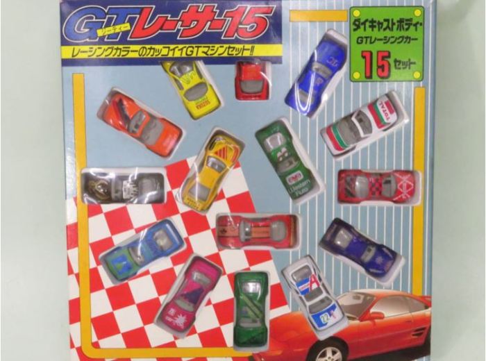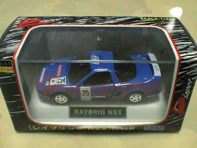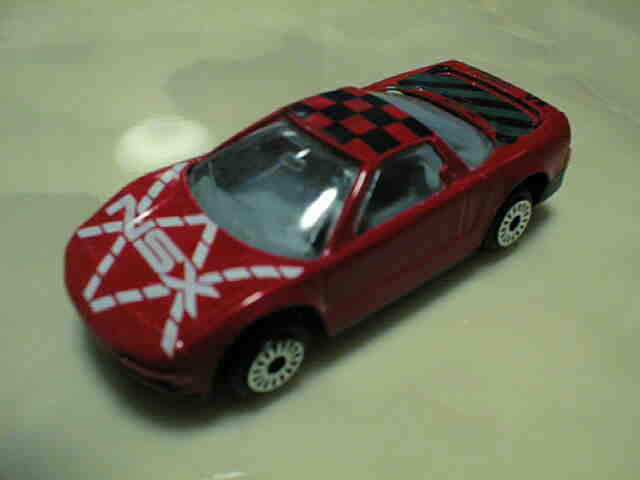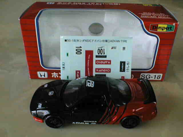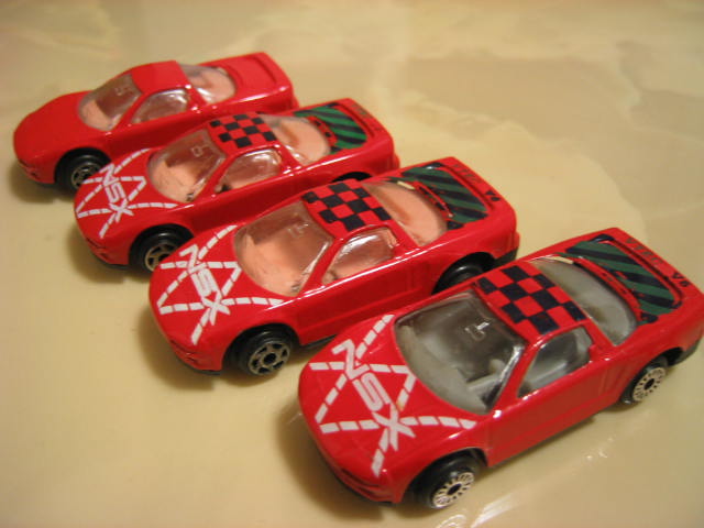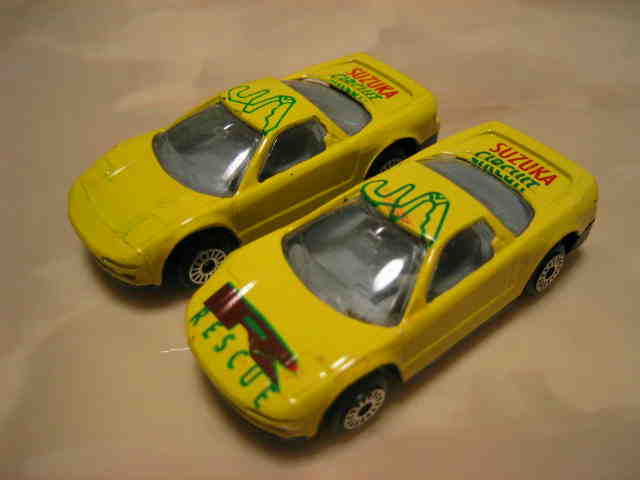 | 2005年1月フランスのコレクターより入手したミニカー15台セット。チェック柄の赤色のNSXと鈴鹿サーキットデザインの黄色のNSXが1台ずつ入っている。内装が肌色の6本スポークタイプだが、タンポのフォントが異なる。 | |