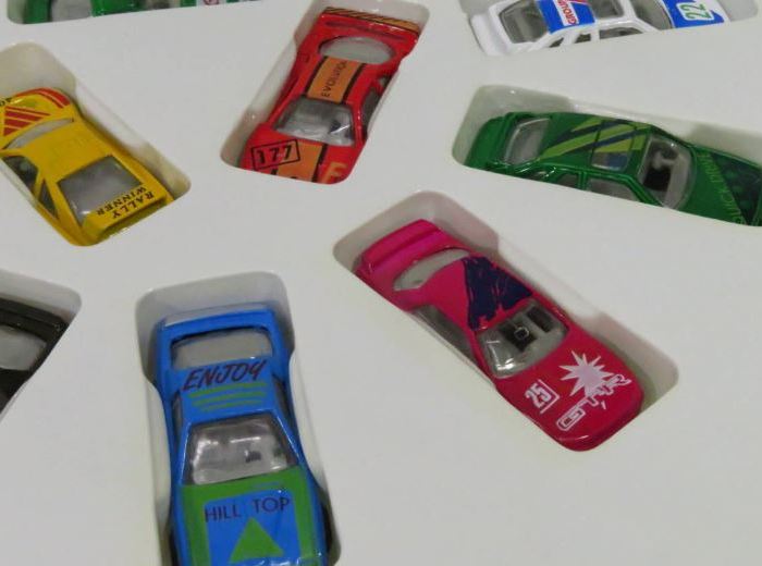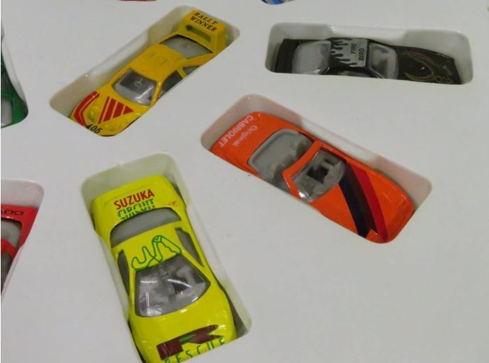 (一番手前のみ内装色とホイール形状が異なるのがわかる。15台セットとオークションでの入手品を比較すると、