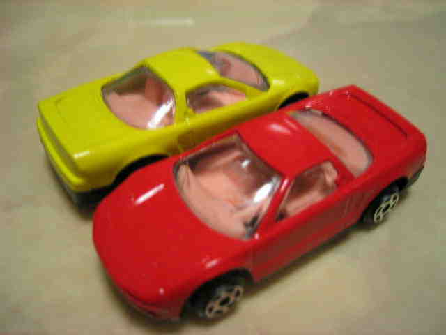 | 黄1と同タンポだがホイールはチェック柄の赤・銀と同じ細かいスポークタイプ。内装は灰色。奥の車は単にタンポ落ちのようなので未カウント。 | |