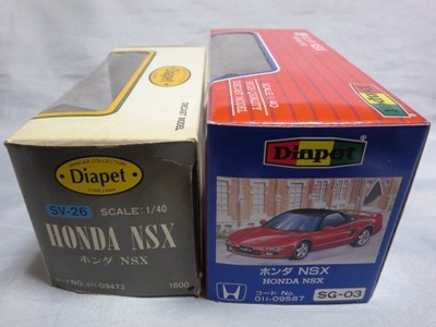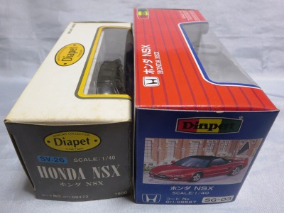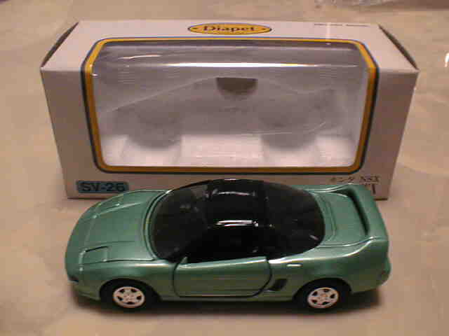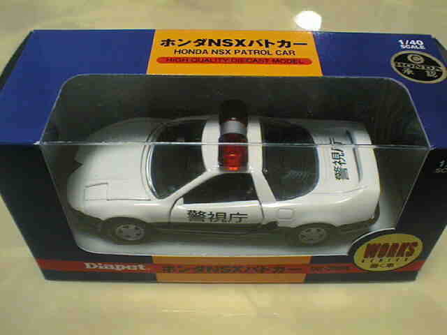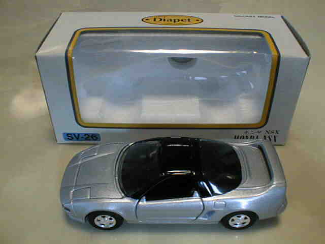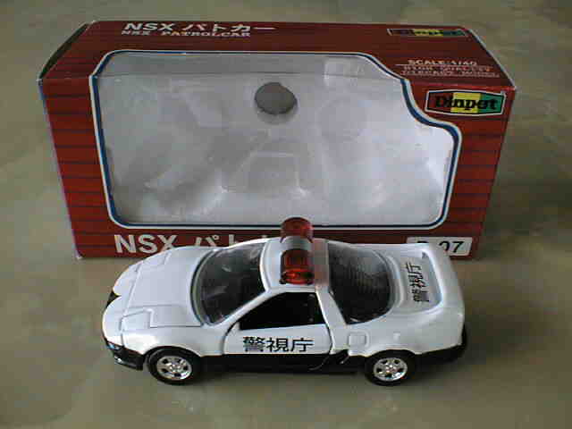 ダイヤペットbyアガツマ(DIAPET by AGATSUMA) 米澤玩具が1965年にスタートさせたブランド。経営はセガ・ヨネザワ→セガ・トイズとかわり、2000年4月よりアガツマに。現在乗用車は11種しかラインナップされておらず、NSXは全て絶版となっていましたが、パトカーのみ働く車シリーズで復活。 通常品の1/40に加え、キャリアカー付属の1/55モデル、及び同型と思われるミニカーもここに分類しています。 この付属のモデルは、長い間、詳細不明だったのですが、2008年11月、北海道のミニカーコレクター・HIRO620さんからの情報で、中国の「SHOBI」というメーカーの商品であることが判明しました。情報ありがとうございました。 |