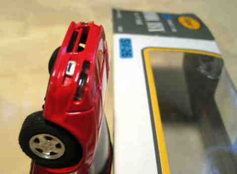 | ボンネットに小さなチップ(塗装ハゲあり)。この手のダイキャストモデルにはありがち。フォグランプはクリアパーツではない。 | |